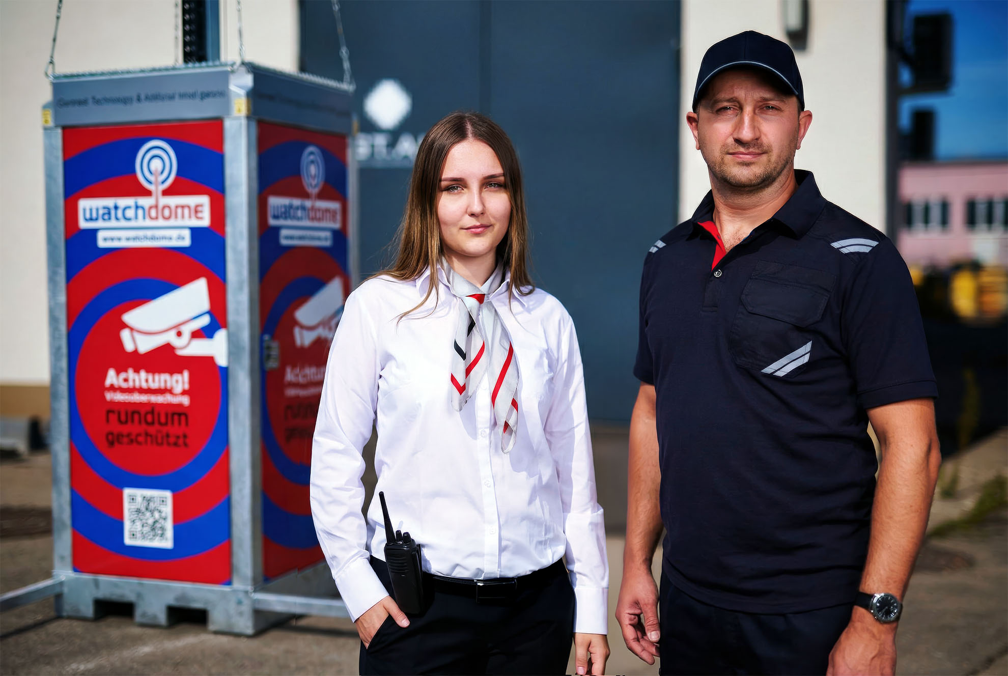 Beispielsweise reagiert der Videotower autonom und meldet in Echtzeit an andere Systeme. Zur schnellen Verifizierung und Videodokumentation fliegt eine unserer Drohnen Alarmpunkte sofort an.